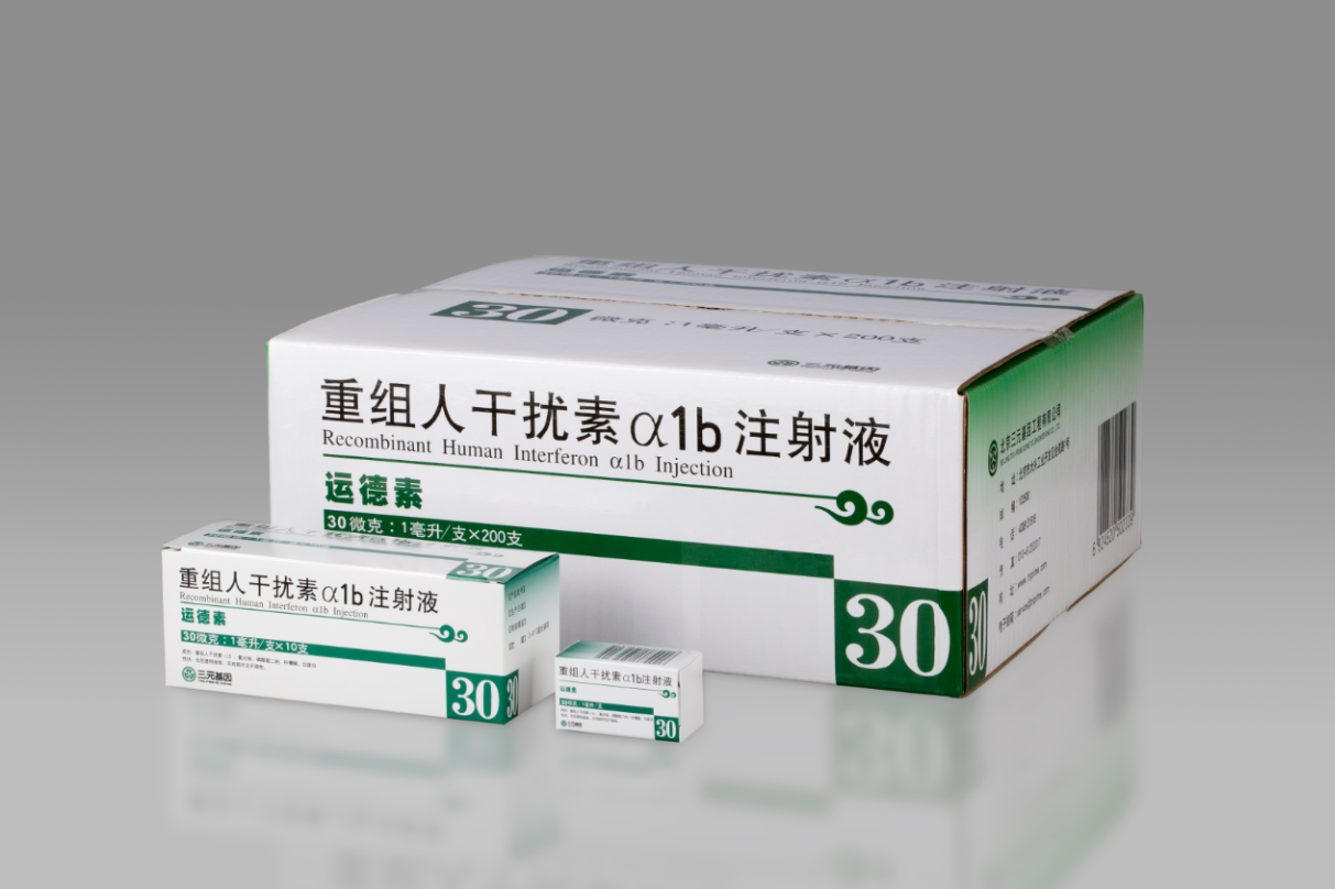 三元基因主要產品重組人干擾素α1b(商品名:運德素),是具有自主知識產權的基因工程一類新藥,實現了我國基因工程藥物從無到有“零”的突破,目前主要用于治療病毒性肝炎、病毒性肺炎、帶狀皰疹、慢性粒細胞白血病和黑色素瘤等多種病毒性疾病和惡性腫瘤。