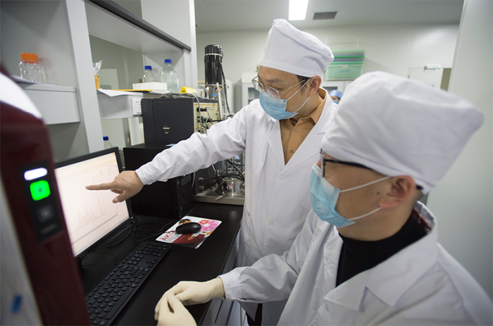 下午4點,北京三元基因藥業股份有限公司的研發中心里,工作人員小孫正在進行液相分析操作。“這個操作主要是監測樣品的濃度和純度。”她說。研發中心里,不同崗位的工作人員忙碌著,他們的目的只有一個——保證重組人干擾素α1b(商品名:運德素)高質量的進入到醫療場所。