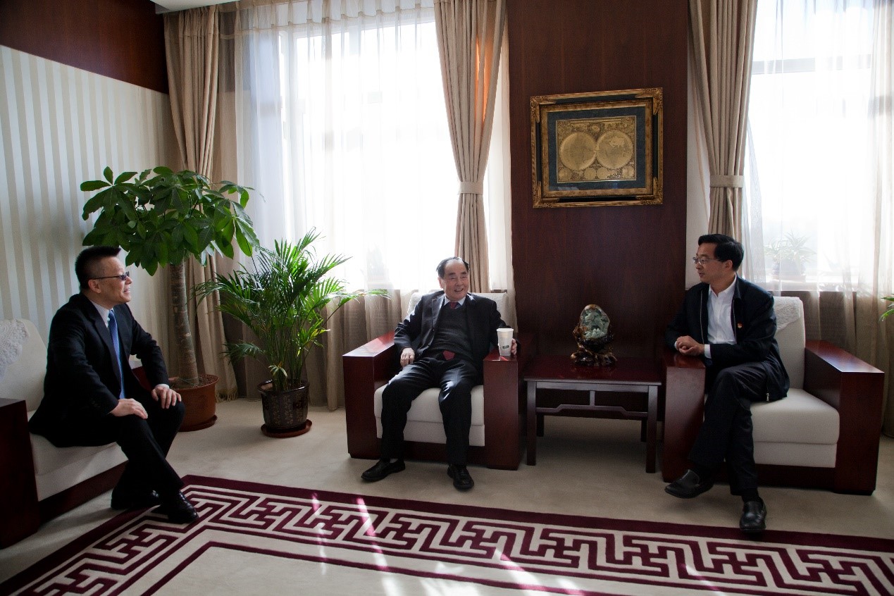 王有國(guó)區(qū)長(zhǎng)與侯云德院士、程永慶董事長(zhǎng)兼總經(jīng)理親切交談