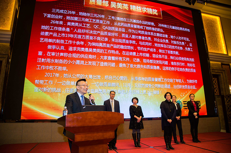 會上,三元基因董事長兼總經理程永慶對行業變革、市場動向等進行了全面闡述與深刻剖析,同時,他分別對公司2017年度的生產質量工作、市場銷售工作、新品研發工作、資本經營工作等各方面的工作成果進行了全面總結與系統回顧,對公司全體員工在2017年的努力和付出表示了充分的肯定與感謝。最后,程永慶董事長兼總經理向全體員工宣布了三元基因2018年的年度計劃、工作目標。